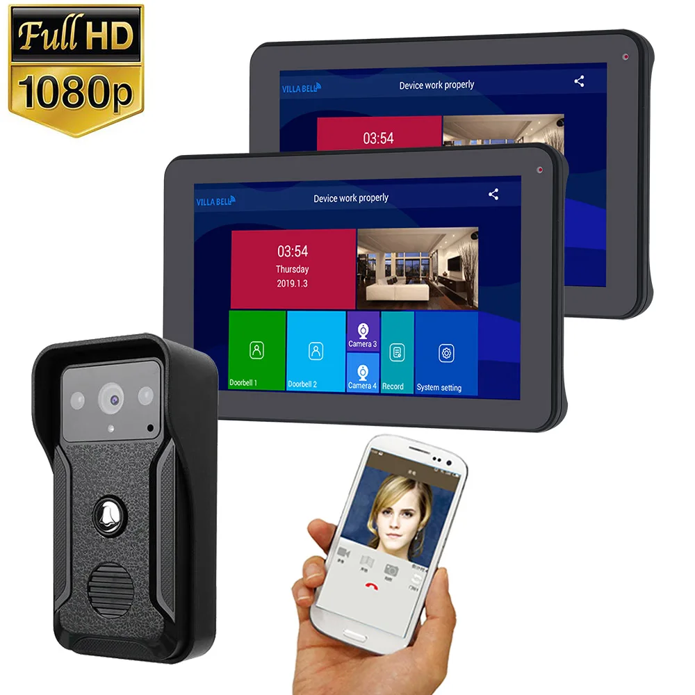 Beste prijs 9 inch 2 Monitor Wifi Wireless Video Door Phone Doorbell Intercom Entry System with HD 1080P Wired Camera Night Vision Koopje