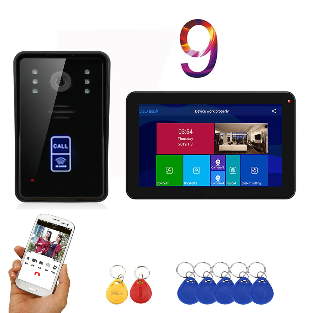 Beste prijs 9inch Record Wireless Wifi RFID Video Door Phone Doorbell Intercom Entry System with IR-CUT 1080P Wired Camera Night Vision Beste