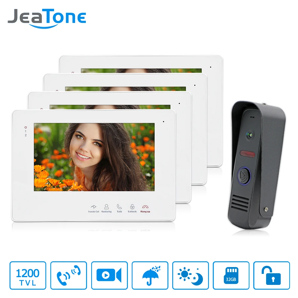 ^ Goedkoop JeaTone 7\Video Door Phone Doorbell Intercom 1 1200TVL Camera Night Vision 4 Touch Button Intercom system unit Monitor Lage kosten