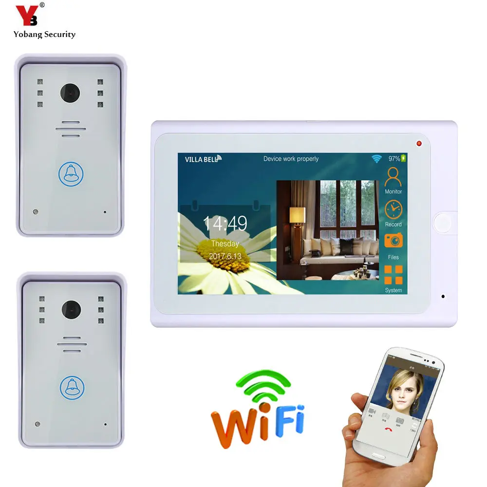 Speciale aanbiedingen YobangSecurity 7inch Wired/Wireless WIFI Video Door Phone Doorbel Intercom System Night Vision Waterproof Camera with Rain Cove Korting
