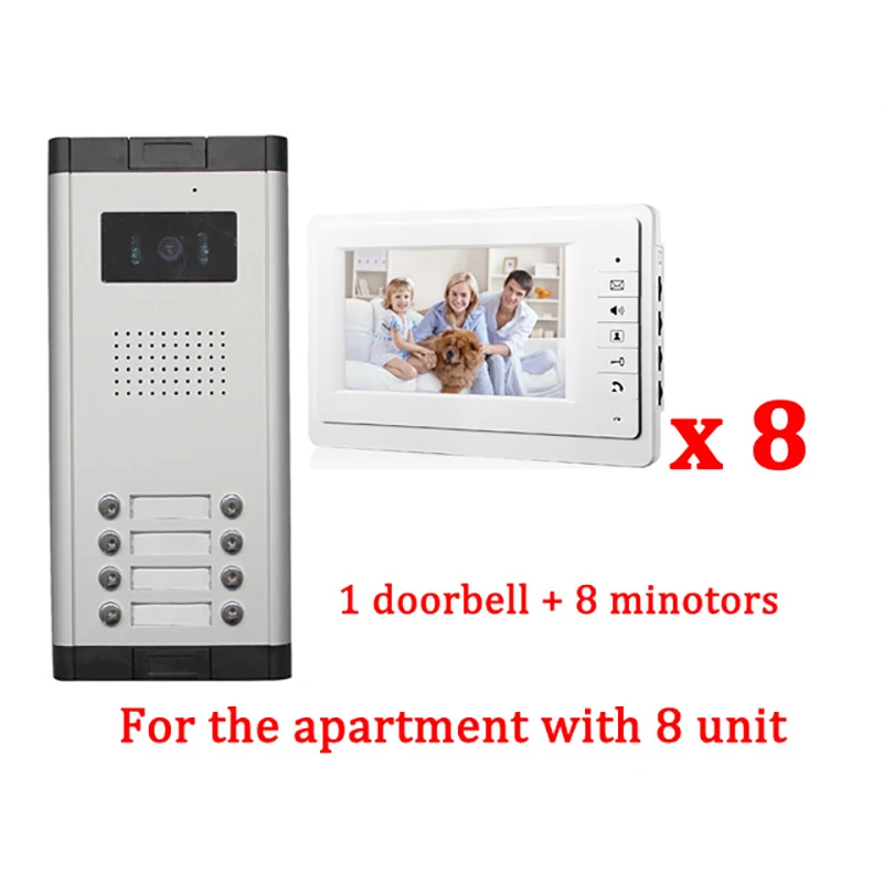 Speciale prijs - 7\ LCD Apartment Wired Video Door Phone Audio Visual Intercom Entry System 1 HD Outdoor Camera With 8 monitor
