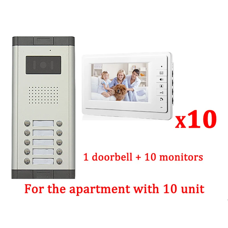 Speciale prijs - 7\ LCD Apartment Wired Video Door Phone Audio Visual Intercom Entry System 1 HD Outdoor Camera With 10 monitor