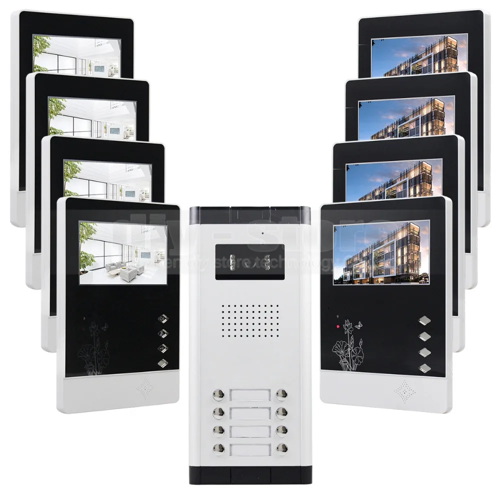 Waar kan ik kopen - DIYSECUR 4.3\ 4-Wired Apartment Video Door Phone Audio Visual Intercom Entry System IR Camera for 8 families Beste aanbiedingen