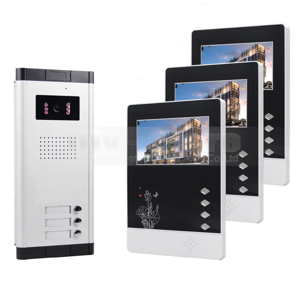 Hoe krijg ik - DIYSECUR 4.3\ Wired Apartment Video Door Phone Audio Visual Intercom Entry System IR Camera for 3 Families Beste prijs