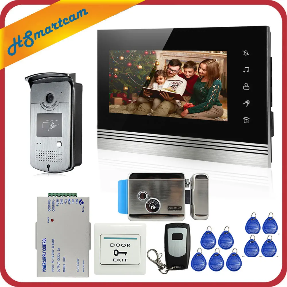 Vergelijken - 7 inch Video Door Phone Video Intercom System 1 Touch Monitor+RFID Doorbell LED HD Camera Electric Lock In Stock FREE SHIPPING ^ Goedkoop