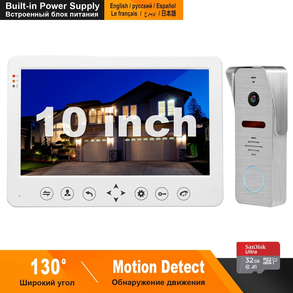 Prijs vergelijkingen van - HomeFong Video Intercom Wired 10inch Monitor Built-in Power Supply 130 Degree Doorbell Camera Home Intercom Motion Detect Record ^ Goedkoop