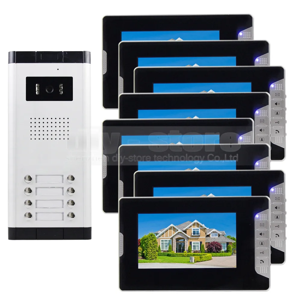 Speciale prijs DIYSECUR Quality 7\ 4-Wired Apartment Video Door Phone Audio Visual Intercom Entry System IR Camera for 8 Families Goedkoop online