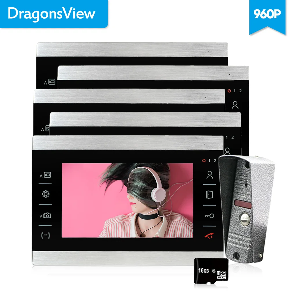 De goedkoopste online - Dragonsview 7 Inch AHD Video Door Phone Intercom System 960P video call with Camera 5 Monitors 1 Outdoor Panel HD Unlock Record Beste aanbiedingen