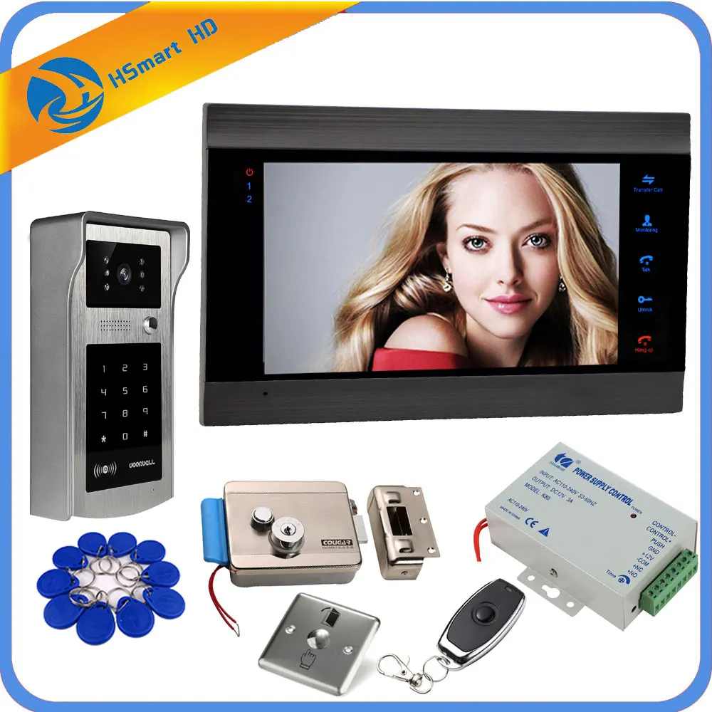 7\ Touch Screen LCD RFID Password Video Door Phone Intercom Doorbell With IR Camera With RFID Key + Electric Lock