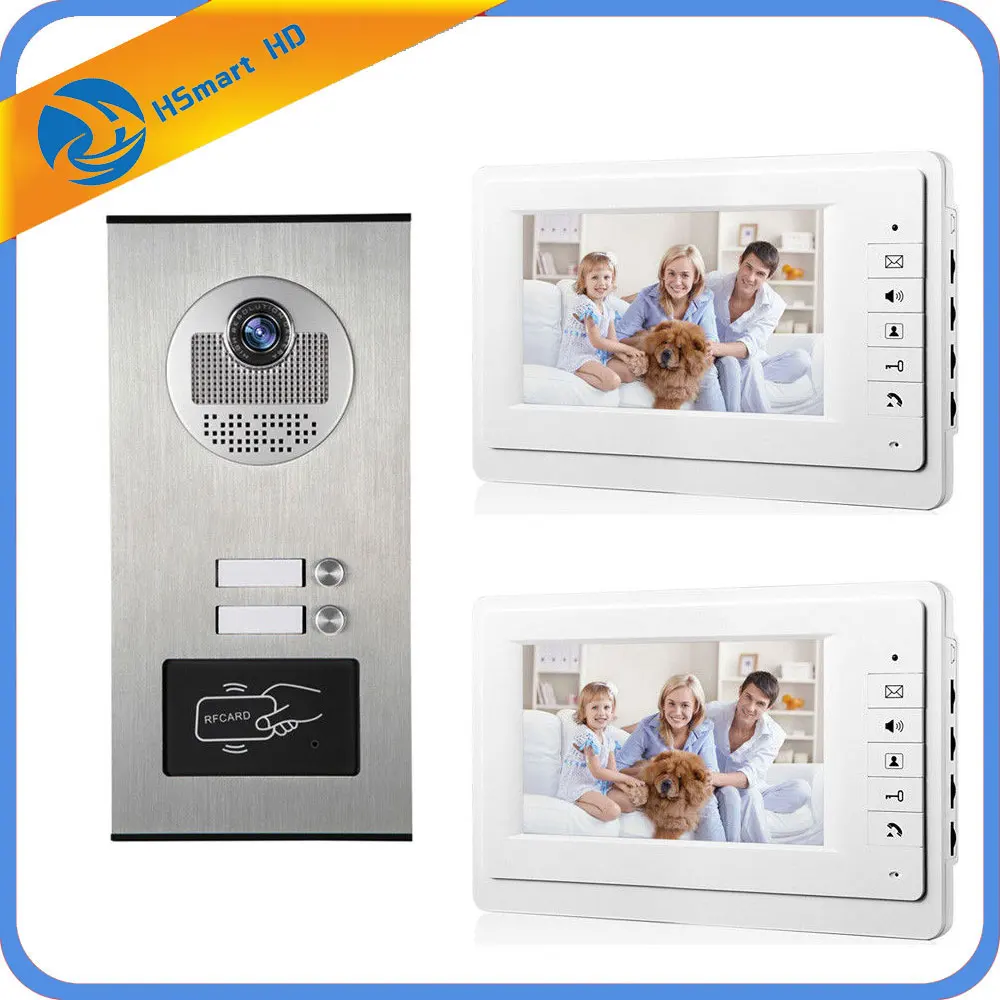Beste prijs 7\ Screen Apartment Video Intercom Door Phone System 3 White Monitors RFID Access Door Camera for 2 Family House Intercom Kits Online