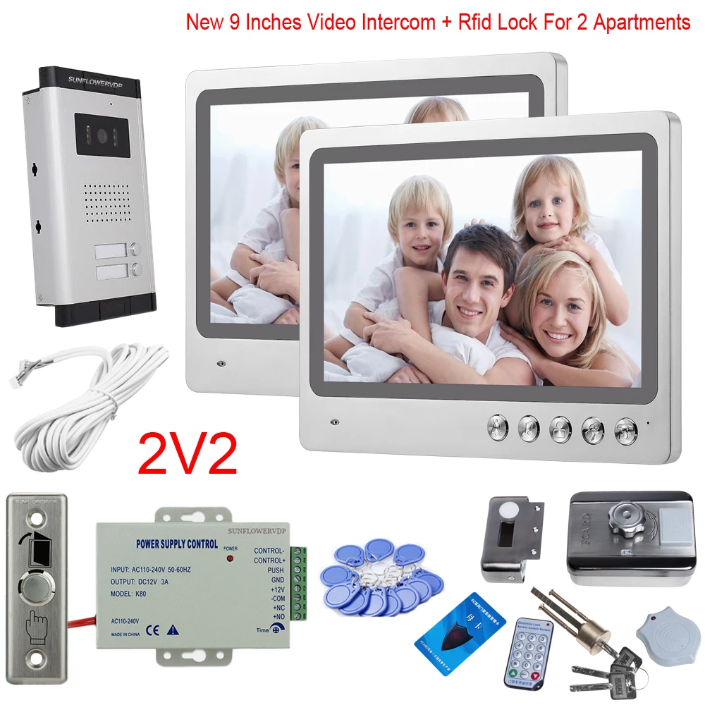 9” Video Intercom For 2/3/4/5/6 Multi Apartments Video Call With Rfid Cards Electronic Door Lock Intercom With Camera For Home