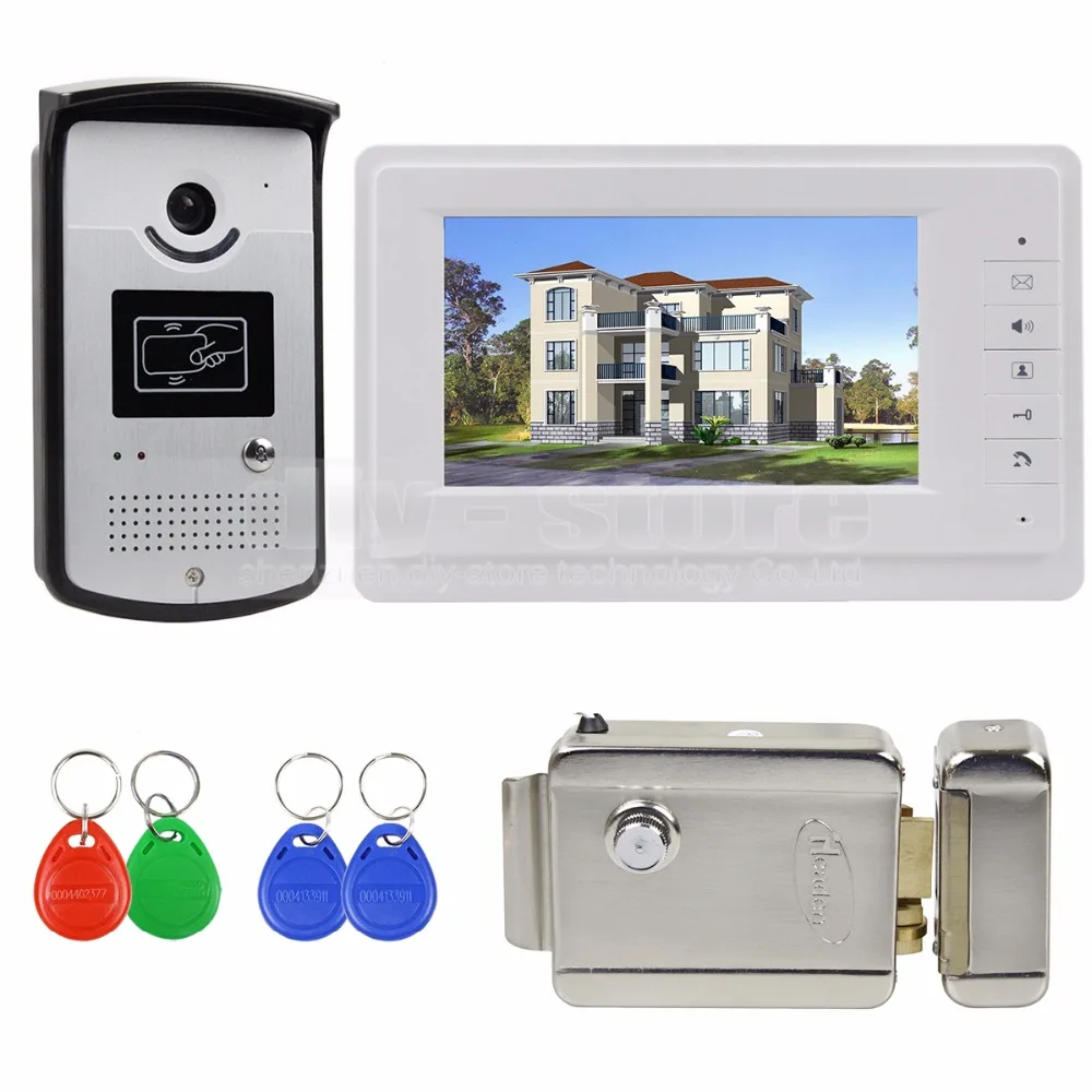 Lage kosten - DIYSECUR 7 inch Color Video Door Phone Video Intercom System 700TVL IR Camera RFID Keyfobs Electric Lock Unlock Beste aanbiedingen