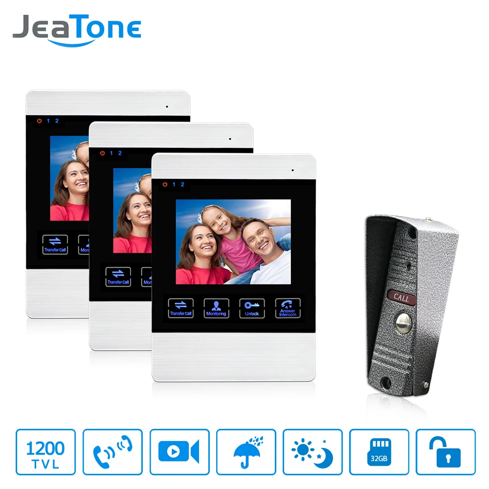 Beste prijs JeaTone Video Door Phone Wired Intercom Doorbell Camera HD Connect CCTV Electronic Lock Monitor Unlocking Monitoring Talking Hoe krijg ik