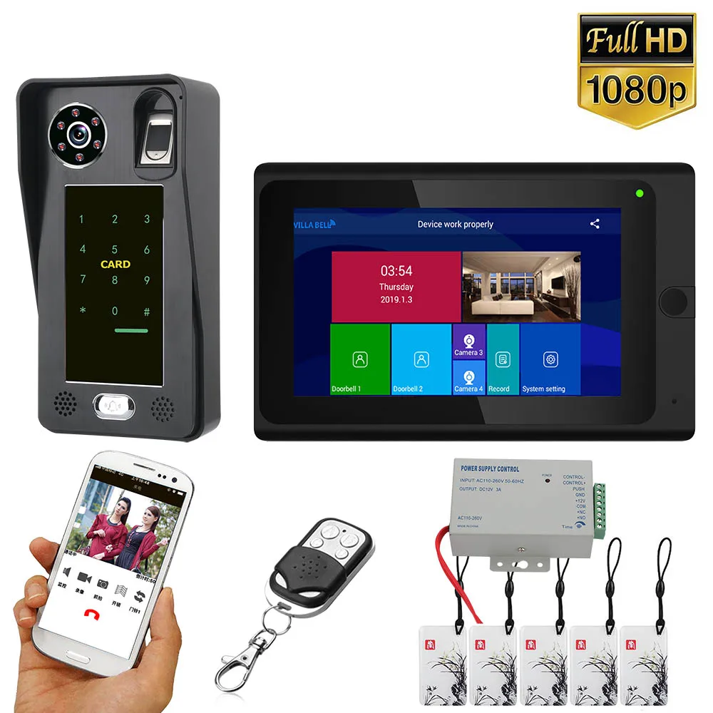 Vergelijken - 7 inch Wifi Wireless Fingerprint IC Card Video Door Phone Doorbell Intercom System with Wired HD 1080P camera Beste aanbiedingen