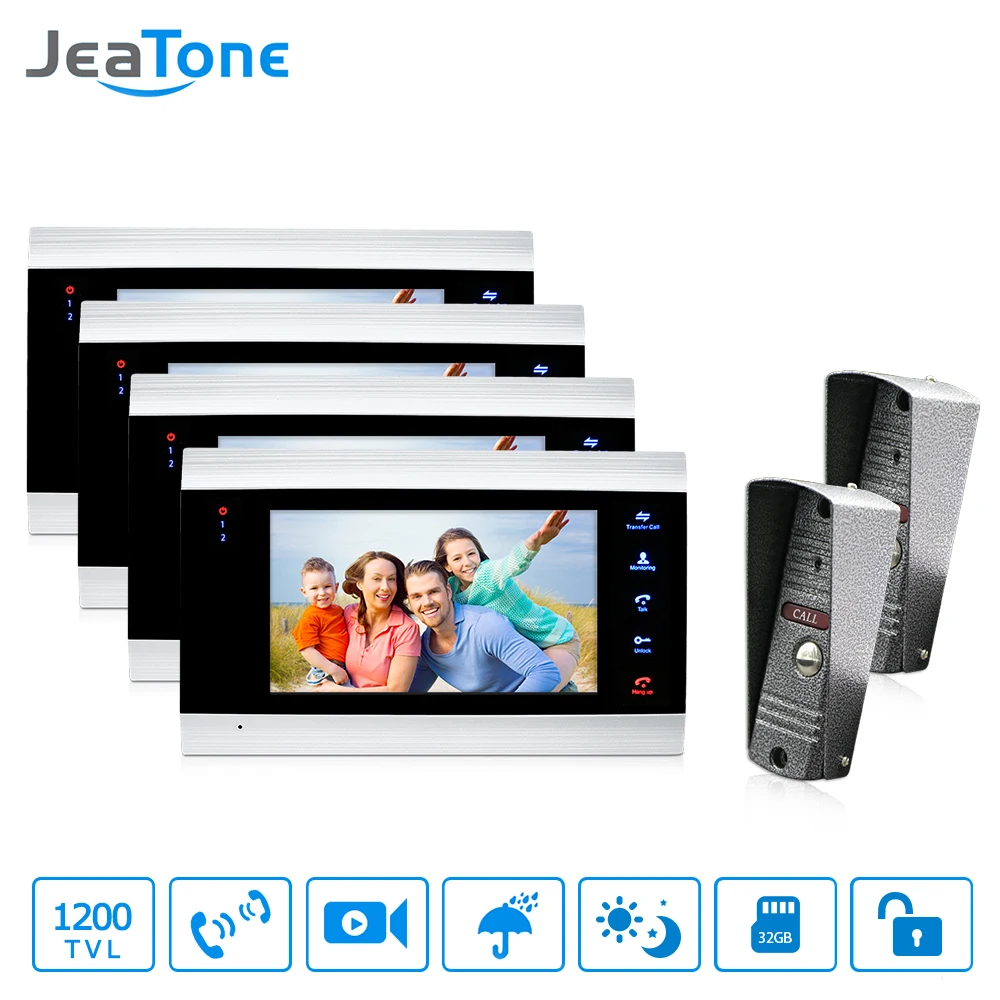 Speciale aanbiedingen JeaTone 7 inch Video Door Phone Doorbell Intercom With 1200TVL Outdoor Camera On Door Video Intercom 2 to 4 Security System Koopje