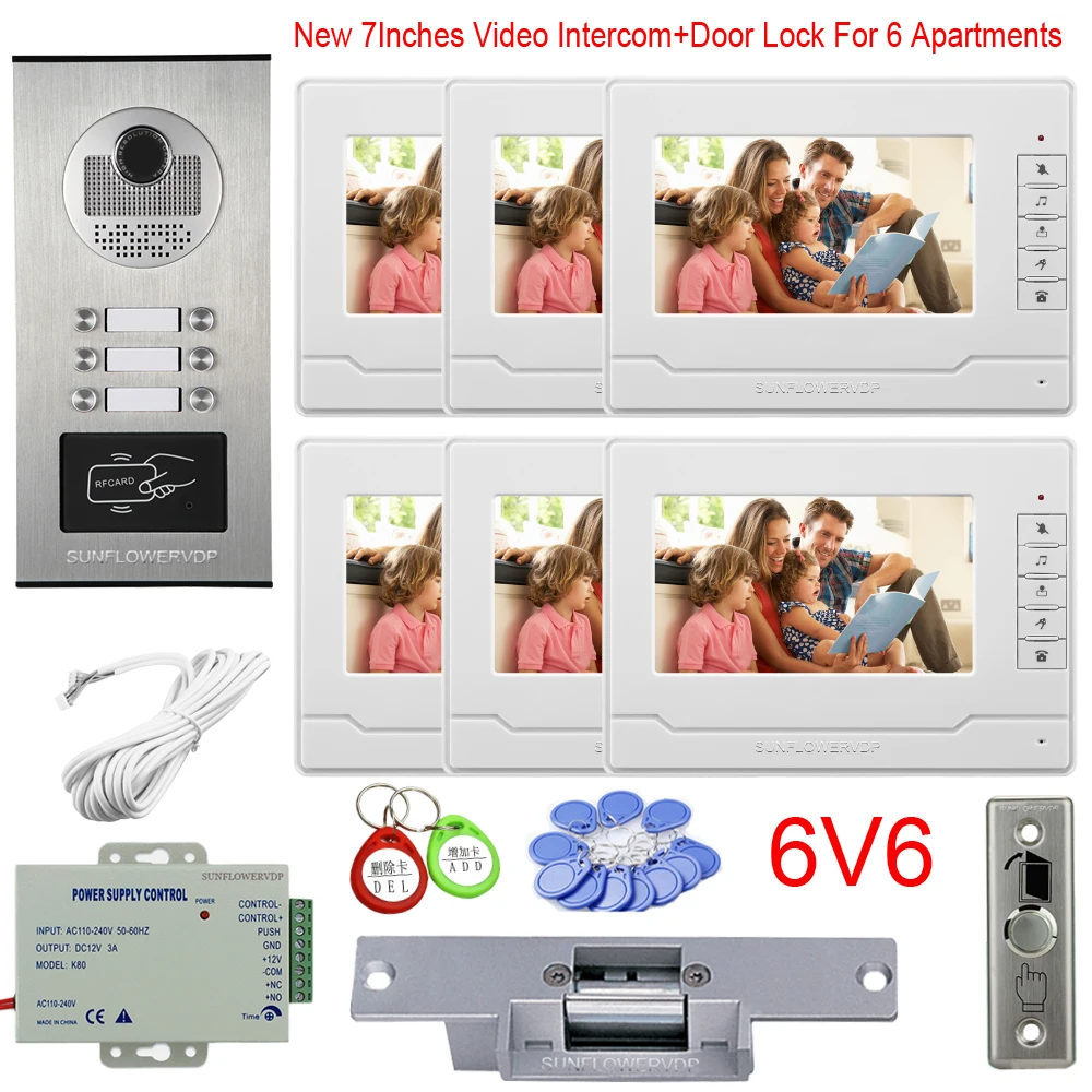 Beste prijs - Multi Apartments Video Call Rfid Cards Door Camera 2 to 6 Buttons Wired Video Intercom 7Inches New Monitor + Eectric Door Lock Beste aanbiedingen