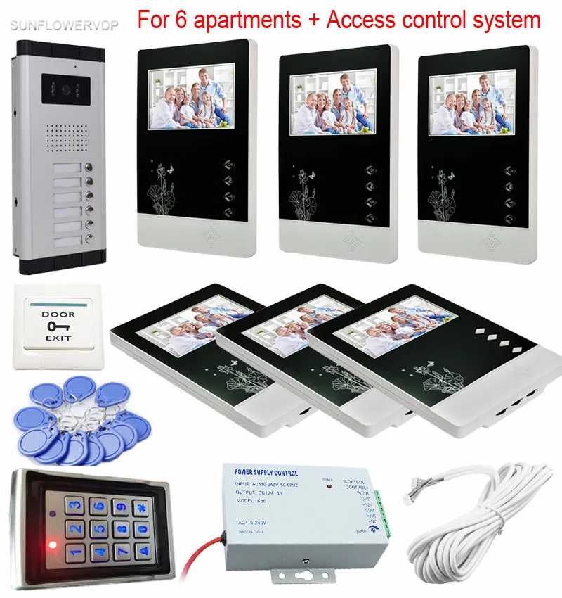 Te koop - For 6 Apartments Home Intercom Door Video Call Color 4.3\Lcd Door Phone 6 Buttons Outdoor Camera With Rfid Keypad Access Control ^ Goedkoop