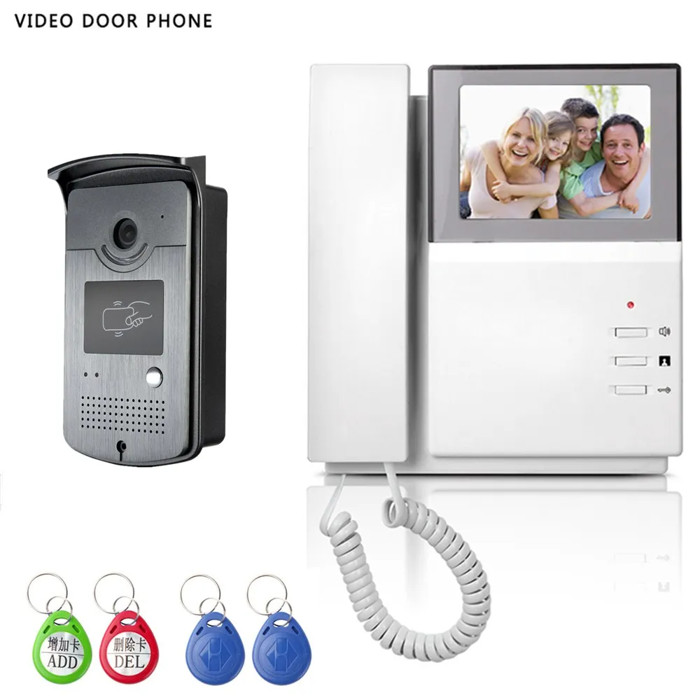 Speciale aanbiedingen Big video intercom system 4.3''tft lcd handset screen monitor wire video doorphone for villa night vision camera metal RFID card Lage prijs
