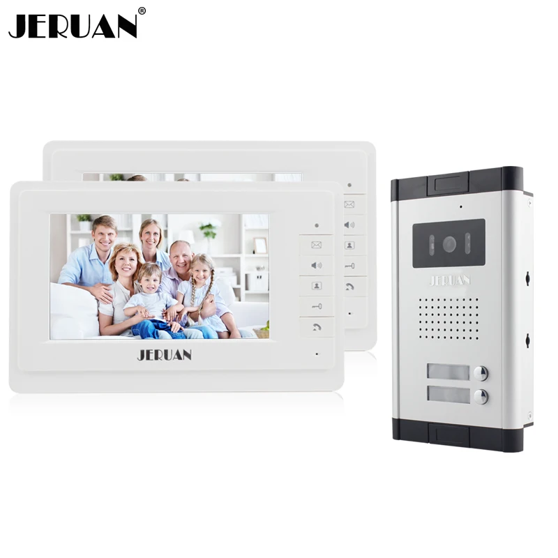 Speciale aanbiedingen JERUAN New 7\ Video Intercom Apartment Door Phone System 2 White Monitor 1 HD Camera for 2 Household In Stock Wholesale Beste prijs